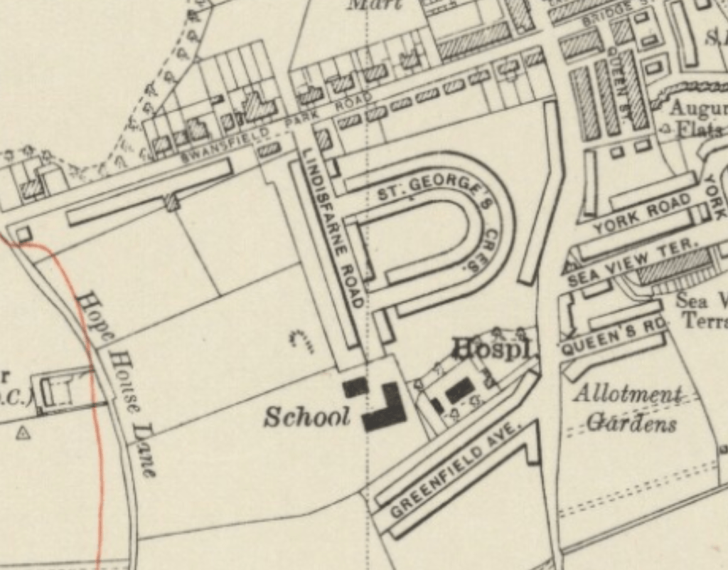 By 1938, when the Ordnance Survey was preparing this map, housing was starting to surround the fever hospital. Alnwick County Secondary School (later Lindisfarne Middle School) had been built alongside, and would open in 1939. Fears of contagion must have diminshed.