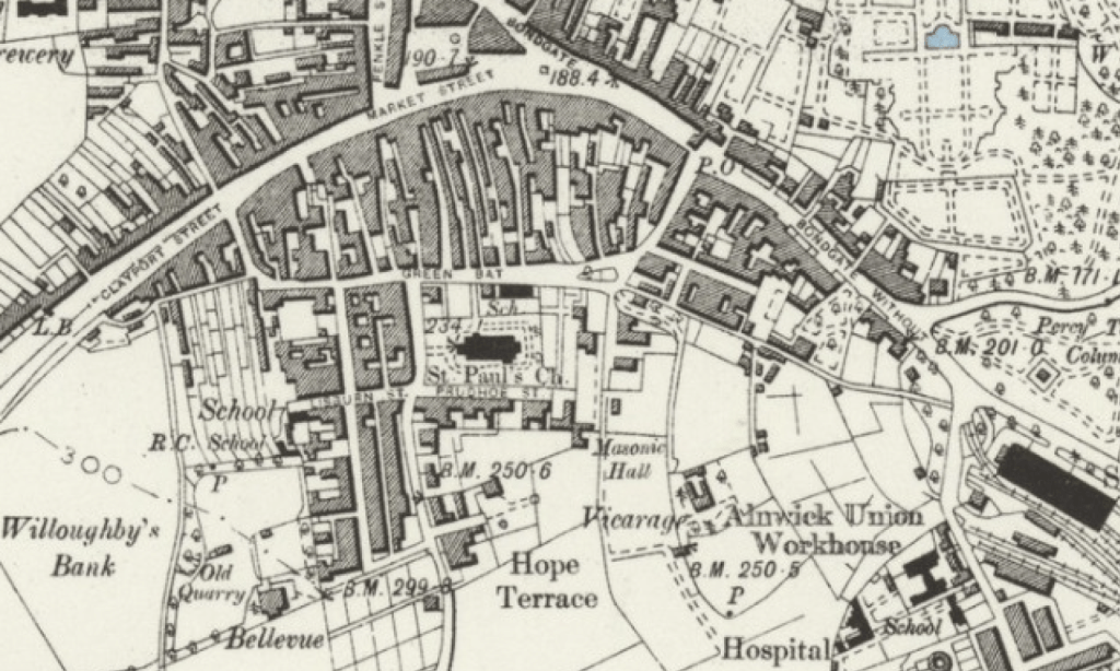 In last issue the requirements of the town, or the wishes of some parties to have Prudhoe Street extended right through to the station is again brought before the notice of the public. Supposing that the land lying to the south of Alnwick was at this present time available for building purposes, I do not think any intelligent surveyor or estate agent would start to carry Prudhoe Street right through as proposed. The best way would be to have the road by Dovecot Lane: the reason why is, that as the largest amount of traffic would have to be on that route it would not be wise to have that traffic from the station to Mr Reavell’s new house, and then turn down Green Bat, but to make the road by Dovecot Lane, Green Bat (pulling down the house facing East at Monkhouse Square), and carrying the road forward (by way of Narrow Lane) on the wall at Swansfield, thence, if necessary, to Clayport, Lisburn Street to be carried forward to Swansfield wall, and streets made to correspond with Howick Street. This could only be done by someone, or company, or municipal body, buying up the different owners. To carry a street from Lisburn street to Clayport, as has been proposed throughout this paper, would be be a waste of land. Supposing this was the proper route, and the land lying to the south was required, and could be obtained for building purposes, the next thing would be to drive a road from Grey Place to the new road from Hope House to the station, next make another road or street from north side of Workhouswe to Greensfield Road, a little to the north of the footpath, through the allotments. Once the main roads were made the thing would be as simple as A B C. As for Prudhoe Street it could be extended to Grey Place, or remain as at present until the new road was made through the Duke School gardens.