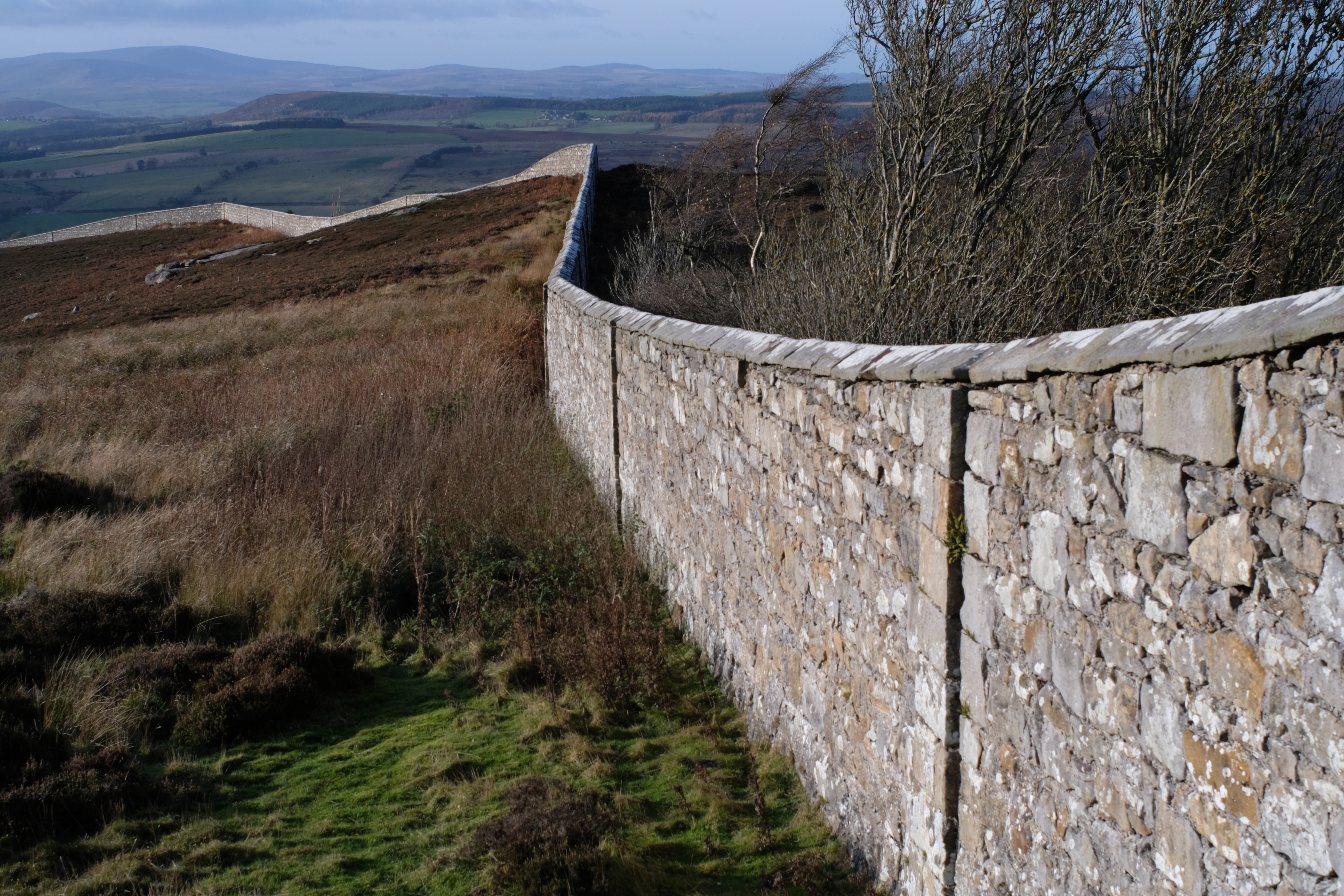 Part of the pale of the Hulne deer park can still be seen as a ditch and bank near Cloudy Crags, crossing the 19th century wall at an angle.