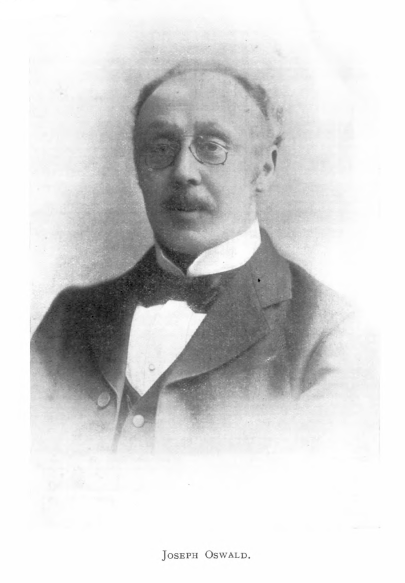 Joseph Oswald was born on 19 March 1851 and was educated at Newcastle Royal Grammar School. His father, Septimus Oswald, was a founding member of the Northern Architectural Association. Joseph was articled to his father from 1863 to 1868, and remained as assistant until 1876 when he was taken into partnership. His father withdrew from the practice in 1891. Around 1900 Joseph took his son Harold Oswald into partnership, and so created the architectural practice J. Oswald & Son. His brother Gilbert subsequently also joined the practice. After Harold died in 1938 and Gilbert in 1945 the practice was carried on by various other partners.