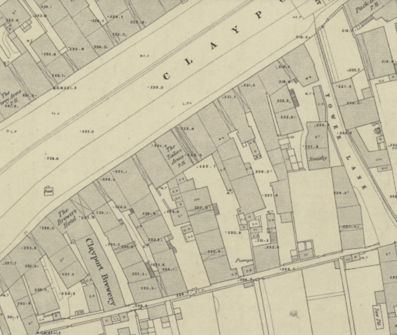 The Tailors’ Arms, or Taylor’s Arms dated from around 1855, and was one of a dozen pubs on Clayport until magistrates decided not to renew its licence in 1908. The large-scale Ordnance Survey Town Plans from the National Library of Scotland help us to understand why <here>.