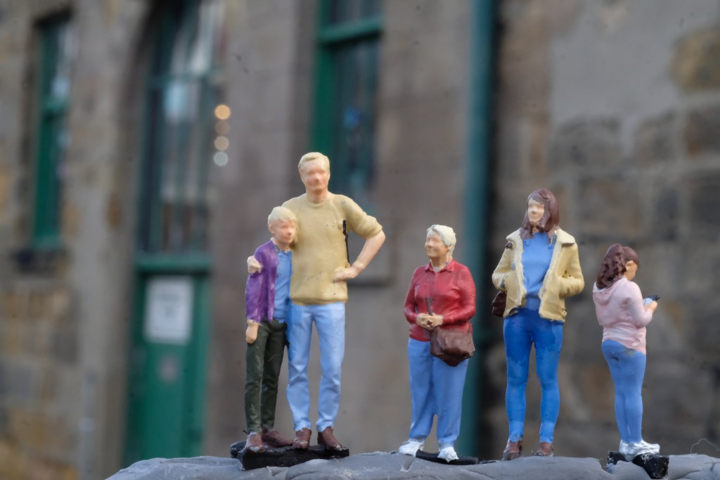They make them by scanning real people then creating figures at various different scales using a 3-d printer.